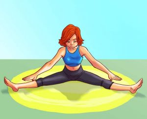 Jest to kolejne bardzo łatwe ćwiczenie, aby je wykonać, siadamy na płaskiej powierzchni z wyciągniętymi plecami i rozstawionymi nogami. Teraz bardzo ważne będzie oddychanie, gdyż na wdech unosić będziemy nasze ręce w górę, a na wydech będziemy się pochylać, jak najbardziej możemy, ale pamiętać musimy, aby mieć plecy wyprostowane przez cały czas. Powtarzamy cały proces przez ok. 1 minutę. Ćwiczenie wzmocni nasze plecy, ureguluje cykl miesiączkowy oraz zlikwiduje skurcze w pachwinie.
