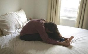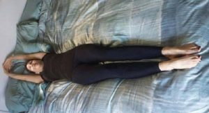 Relaksując się na łóżku, wykonuj głębokie wdechy i wydechy. Po kolejnym głębokim oddechu, pochyl się bardziej. Wykonaj to 10 razy, by rozluźnić ciało. To idealne przygotowanie kręgosłupa do pracy w ciągu dnia, szczególnie dla osób, które dużo siedzą.