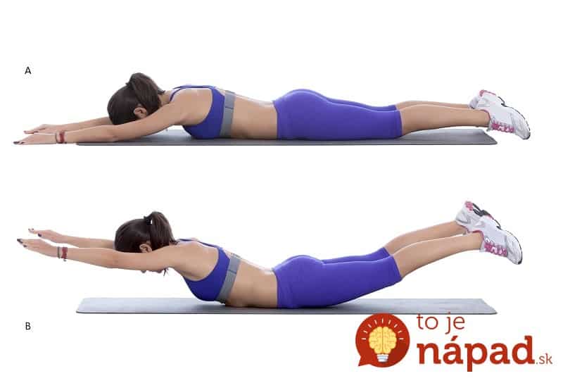 Nazwa ćwiczenia bierze się od pozycji, która przypomina lecącego w swojej pelerynie słynnego superbohatera. Kładziemy się na macie, wyciągając nogi z tyłu, a ręce wyciągając przed sobą. Podnosimy nogi i ręce jednocześnie, trzymając je wyprostowane. Przytrzymujemy przez około trzy sekundy i opadamy z powrotem na matę. Ćwiczenie powtórz dziesięć razy.