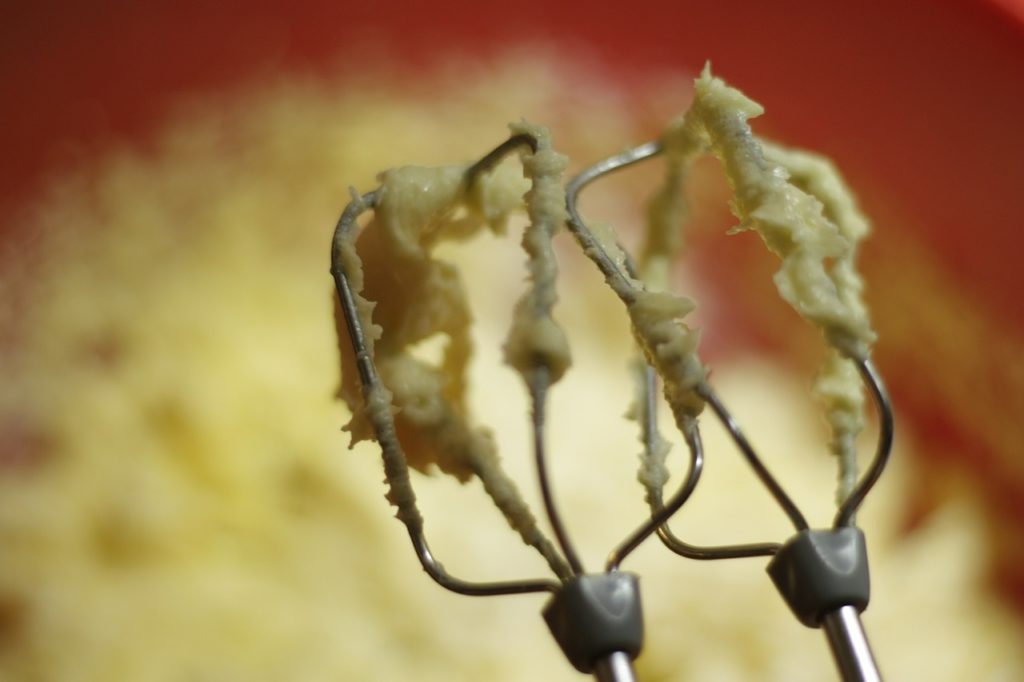 Pozwól kremowi ostygnąć. Do miski z masłem dodać połowę schłodzonej śmietanki i ubić mikserem.