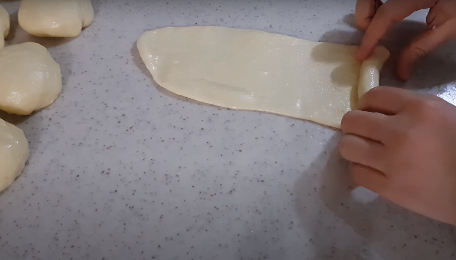 Całość posypujemy mąką, a następnie mieszamy do uzyskania ciasta o gładkiej konsystencji, co powinno zająć kilka minut. Następnie pozostawiamy w misce na około półtorej godziny. Po upływie 90 minut przenosimy ciasto na blat natarty olejem i tworzymy dziesięć kulek równej wielkości. Każdą z nich rozwałkowujemy, a następnie zwijamy w cienką rolkę.