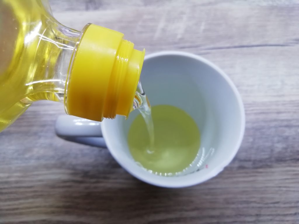 Wlej ciepłe mleko do dużej miski, dodaj ciepłą wodę oraz olej. Następnie wsyp cukier puder, sól i wbij białko jajka. W końcu dodaj drożdże instant i dokładnie wymieszaj za pomocą trzepaczki.