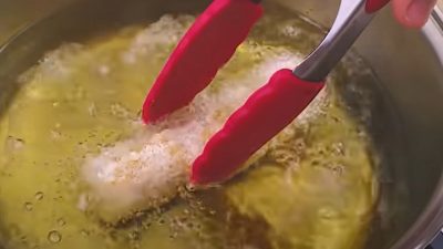 Smaż bułki na rozgrzanym oleju przez około 2 minuty, aż będą złociste. Uwaga: Aby uzyskać najlepsze rezultaty, upewnij się, że olej jest gorący, a rolka jest całkowicie zanurzona.