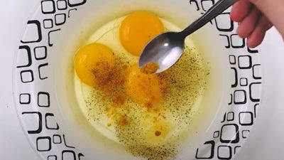 W misce ubić jajka z czarnym pieprzem, przyprawą curry i solą, a w drugiej misce wymieszać mozzarellę z tartym parmezanem. Do drugiej miski wsypujemy mąkę, w której panierujemy bułki, następnie wbijamy je w roztrzepane jajka i na koniec panierujemy w bułce tartej posypanej parmezanem.