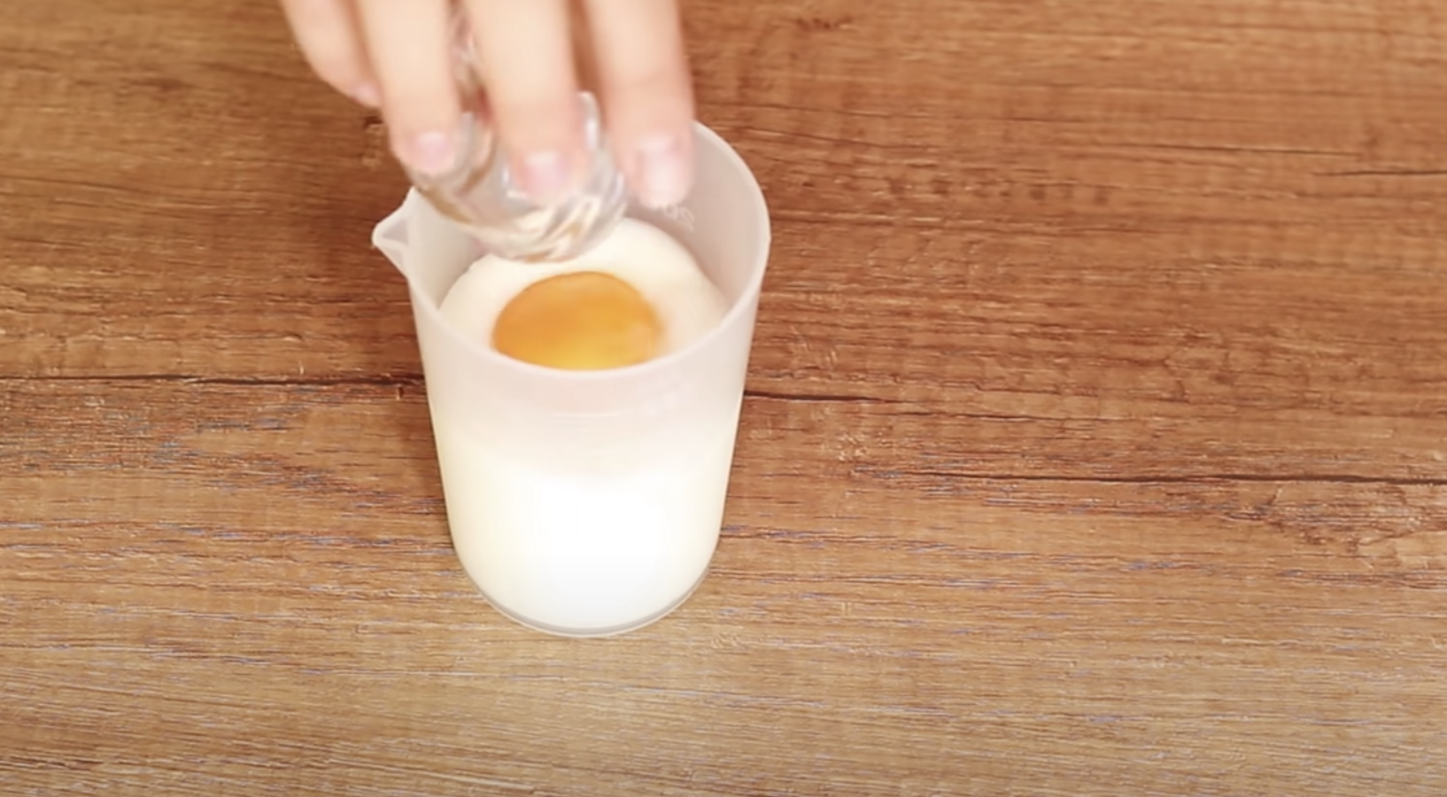Do ciepłego kefiru dodaj żółtko, sól i cukier.