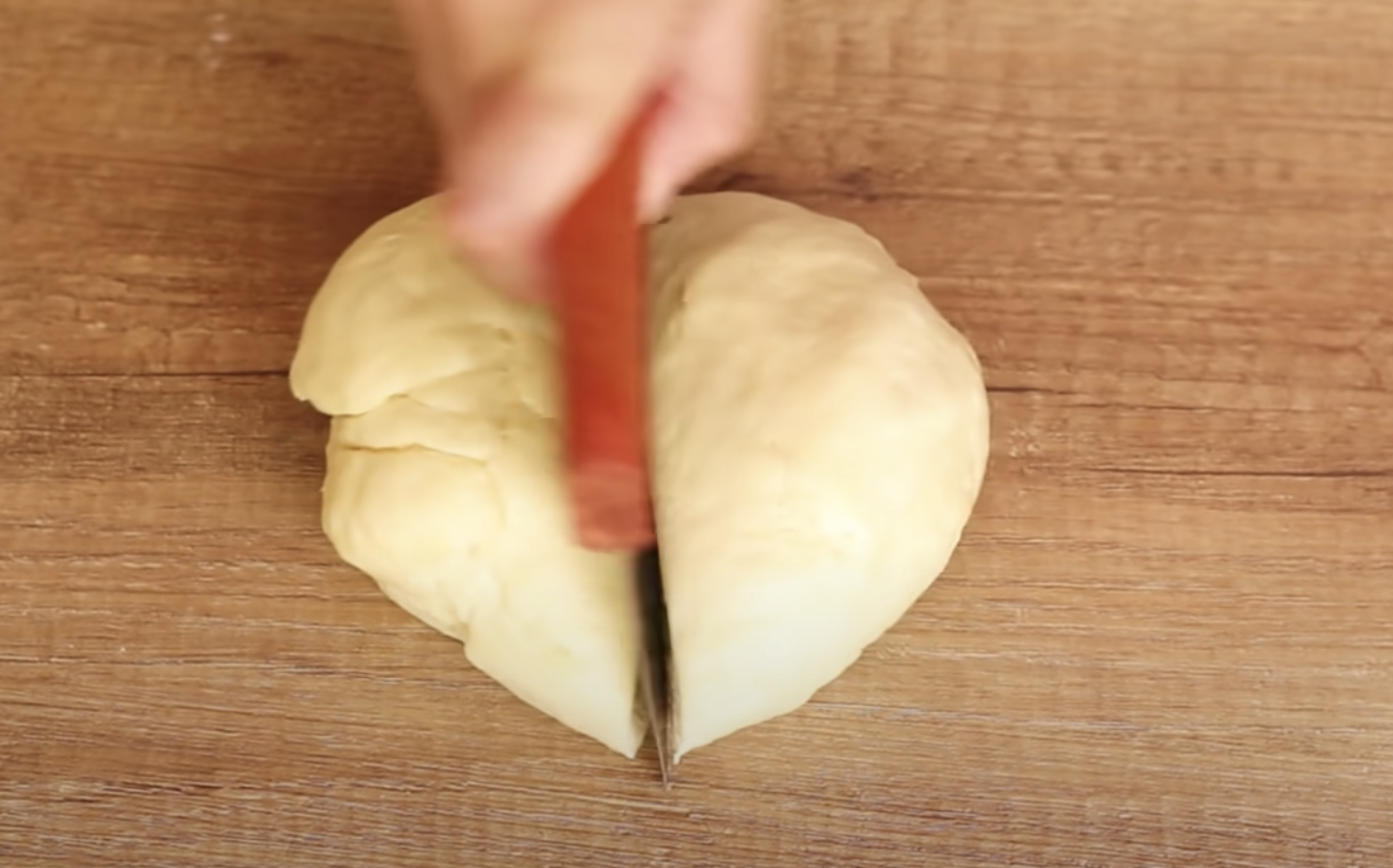 Przykryj je i wstaw do lodówki na 15 minut. Podziel ciasto na 2 części i rozwałkuj każdą na 4 mm.