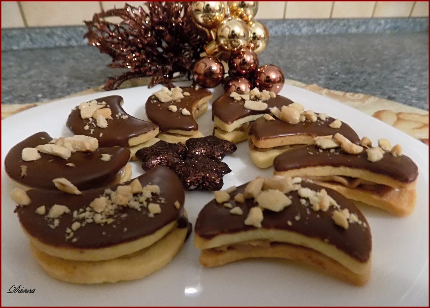 Ubij masło na wierzchu śmietany, dodaj pastę z orzeszków ziemnych i ubij razem na lekki krem. Upieczone ciasteczka sklejamy ze śmietaną, maczamy w roztopionej czekoladzie i posypujemy grubo posiekanymi orzeszkami ziemnymi.
