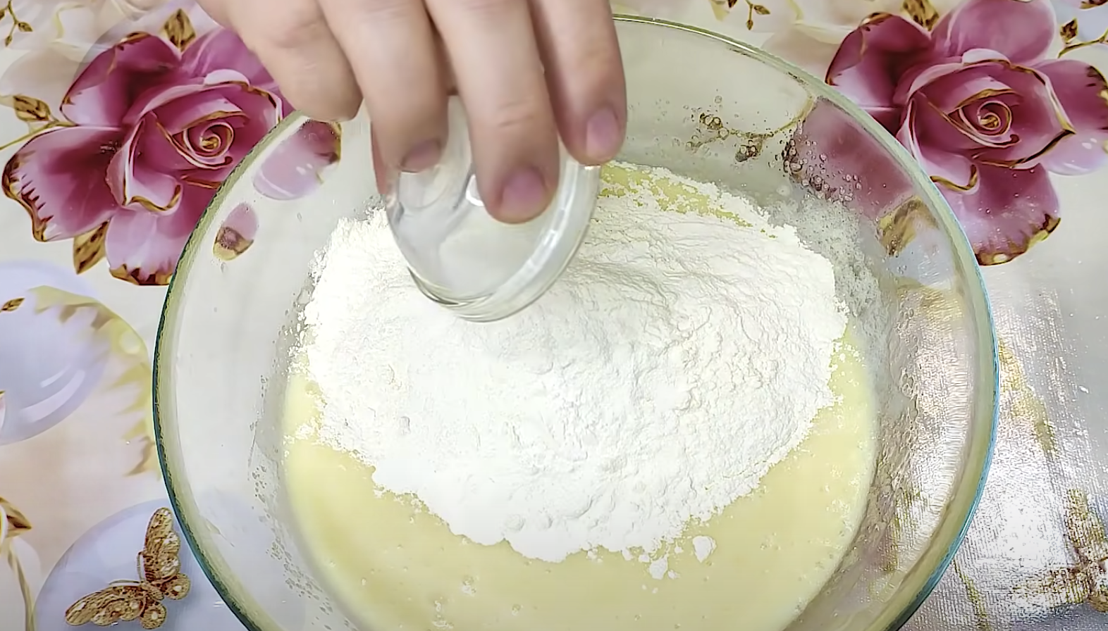 Przede wszystkim jajka ubijamy z cukrem. Do tego dodajemy roztopione masło i jogurt oraz doskonale mieszamy. Do tego stopniowo dodajemy mąkę oraz proszek do pieczenia, oraz dokładnie mieszamy aż do uzyskania jednorodnego i gęstego ciasta.