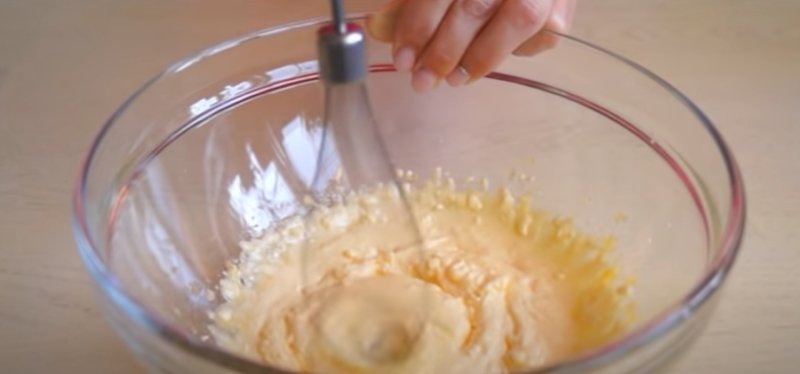 W misce ubijamy żółtka z cukrem, roztopionym masłem, mlekiem, cukrem wanilinowym i solą.
