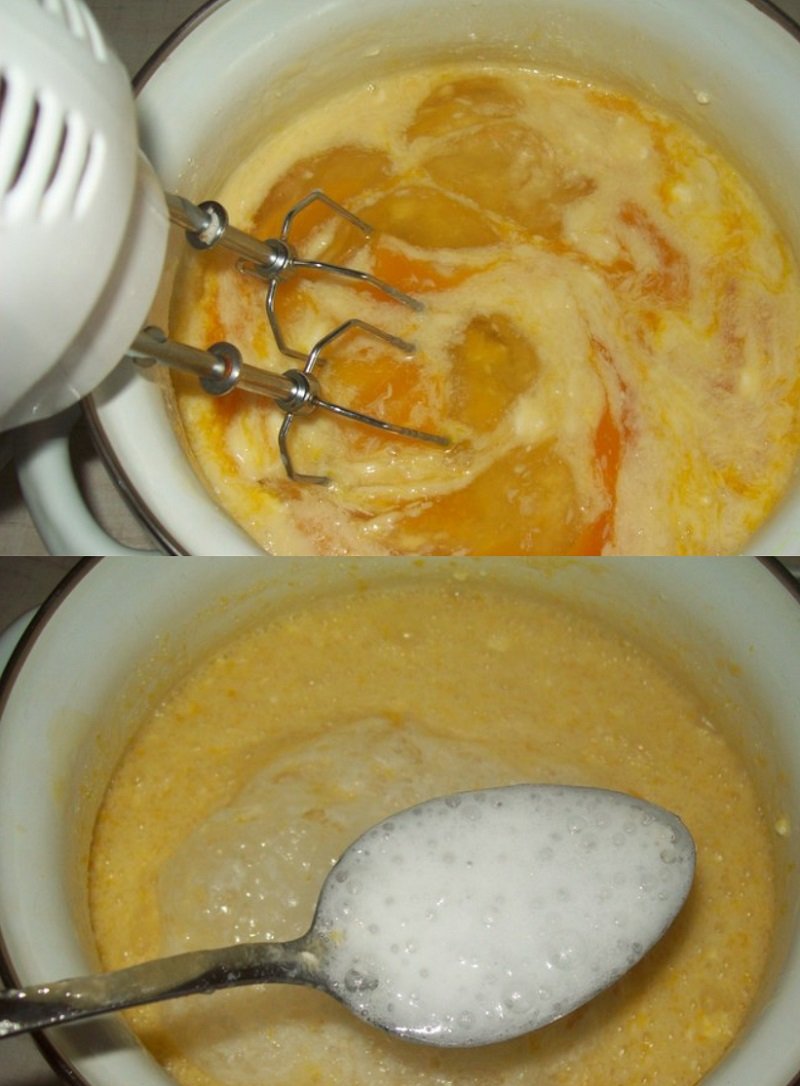 Rozpuść masło w kąpieli wodnej (możesz użyć do tego także margaryny). Dodaj miód, szklankę cukru i wszystko wymieszaj. Wbij jajka, dodaj sodę oczyszczoną wymieszaną z łyżeczką octu, połącz całość.