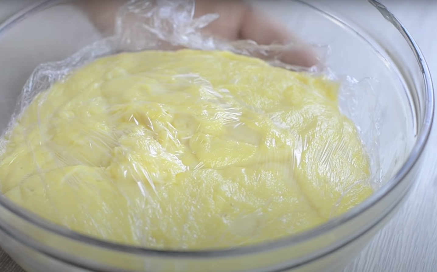 Najpierw zabierz się za przygotowanie kremu. Do miski wbij żółtka, wsyp kaszę mannę, cukier waniliowy, puder, wlej 200 ml mleka. Całość zmiksuj na gładką masę. Do garnka dodaj 800 ml mleka i zagotuj. Dodaj do tego przygotowaną wcześniej masę, wymieszaj i ugotuj krem, Wylej go do miski i przykryj folią spożywczą. Odłóż to aż do ostygnięcia.