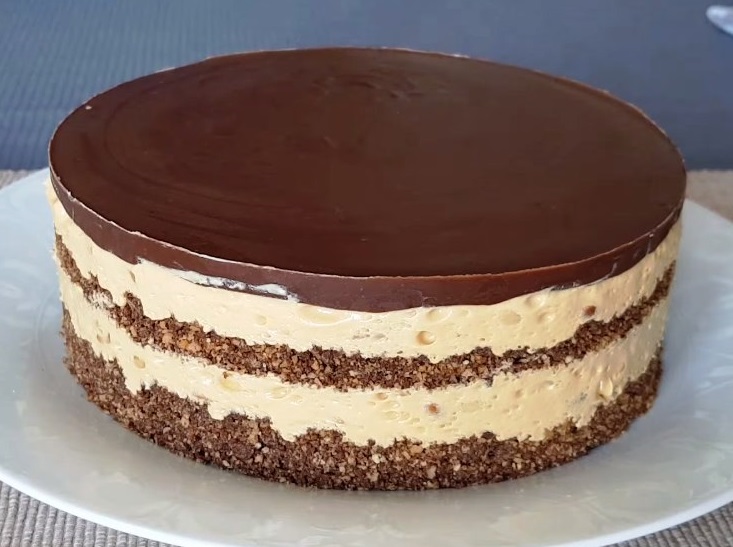 Wyciągnij ciasto z lodówki i polej je zrobioną polewą czekoladową. Włóż do lodówki na minimum na 2 godziny, możesz również na całą noc.