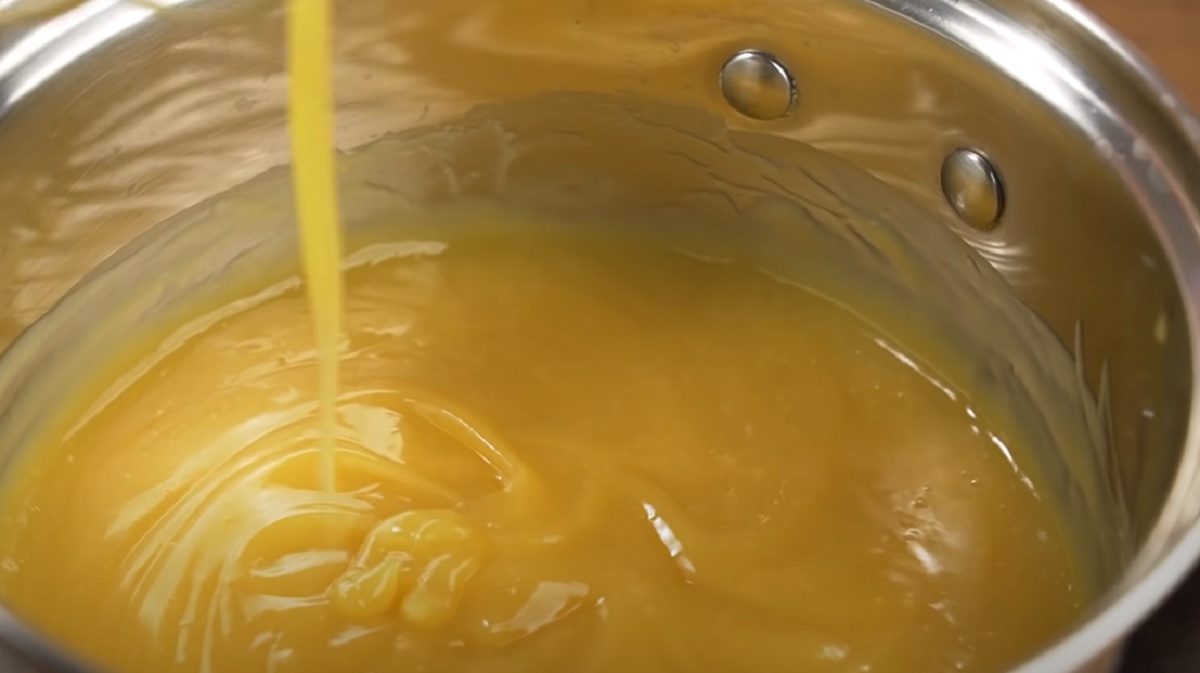 Całość gotuj na małym ogniu, ciągle mieszając, około 1 minutę, do zgęstnienia. Powstałą masę umieść w głębokiej, silikonowej foremce i jednolicie rozprowadź. Odstaw do ostygnięcia.