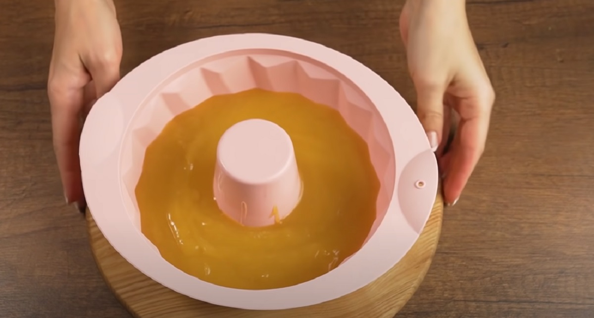 Po tym czasie przestań gotować, dodaj miękkie masło i wymieszaj. Połowę masy umieść w foremce z pomarańczową warstwą i dokładnie rozprowadź po całości.