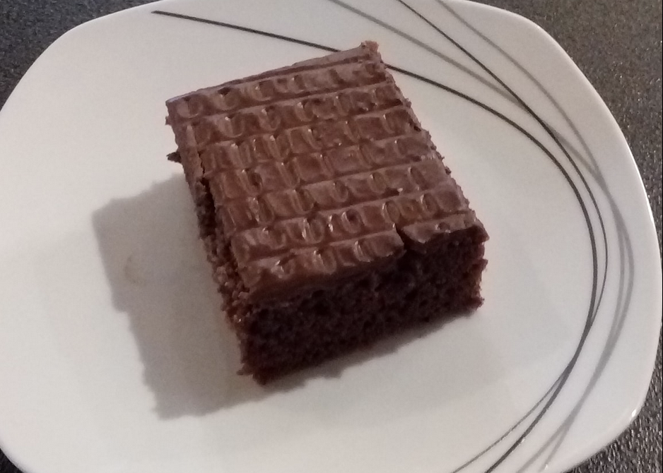 Gdy ciasto jest gotowe, wyjmij je z piekarnika i pozostaw do ostygnięcia. Posmaruj je dżemem (np. morelowym). Dodaj czekoladę. Czekolada powinna być roztopiona. Dodaj do masy bitą śmietanę i delikatnie wymieszaj, aż składniki się połączą.