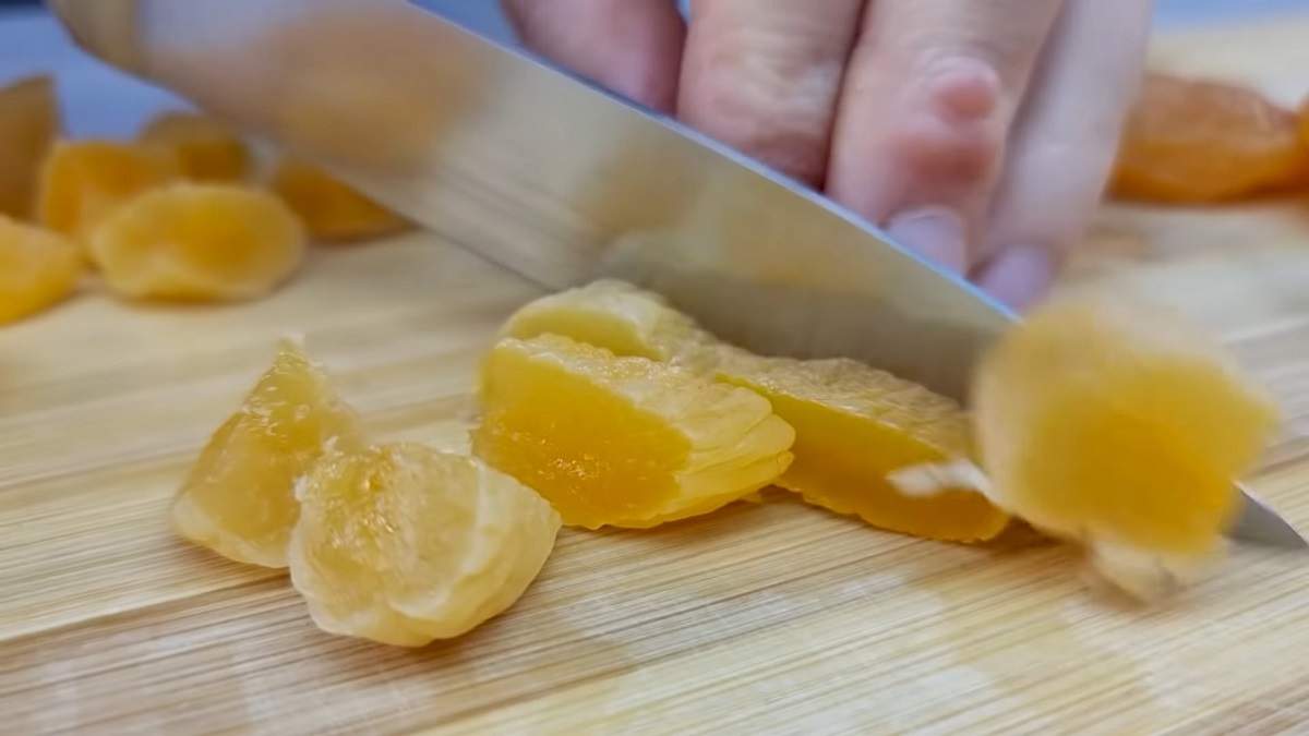 Namoczone owoce drobno pokrój , tak aby dobrze skomponowały się w deserze.