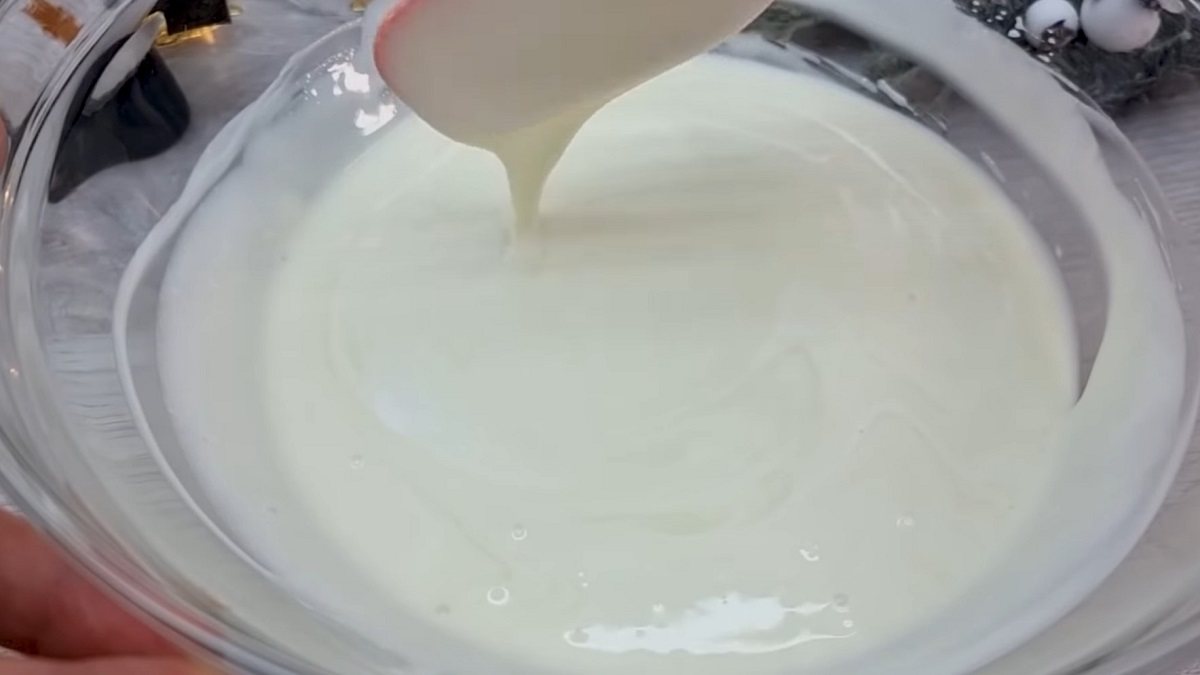 Śmietanę i mleko wymieszaj ze sobą dokładnie i dodaj do masy wszystkie pokrojone owoce i orzechy.
