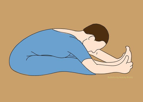 Możesz również spróbować dotknąć dłońmi palców stóp. Możesz to zrobić, kładąc się na plecach, prostując nogi, a następnie pochylając się do przodu i dotykając palców rękami. Rozluźnij wszystkie mięśnie. Powtórz tę czynność co najmniej pięć razy.