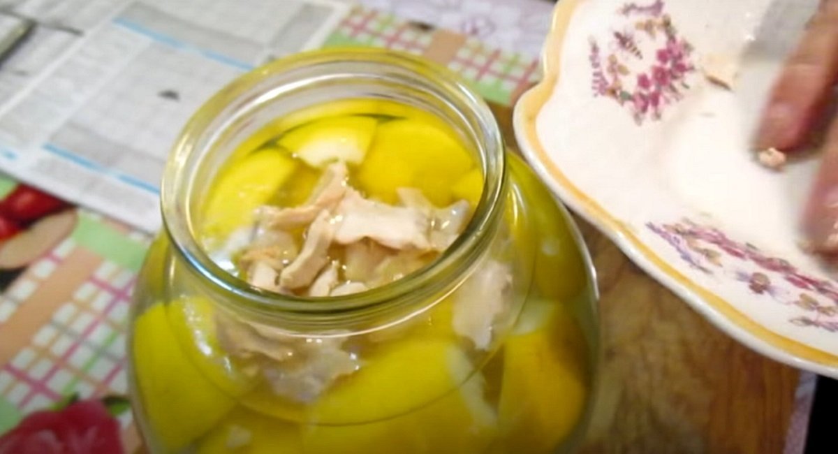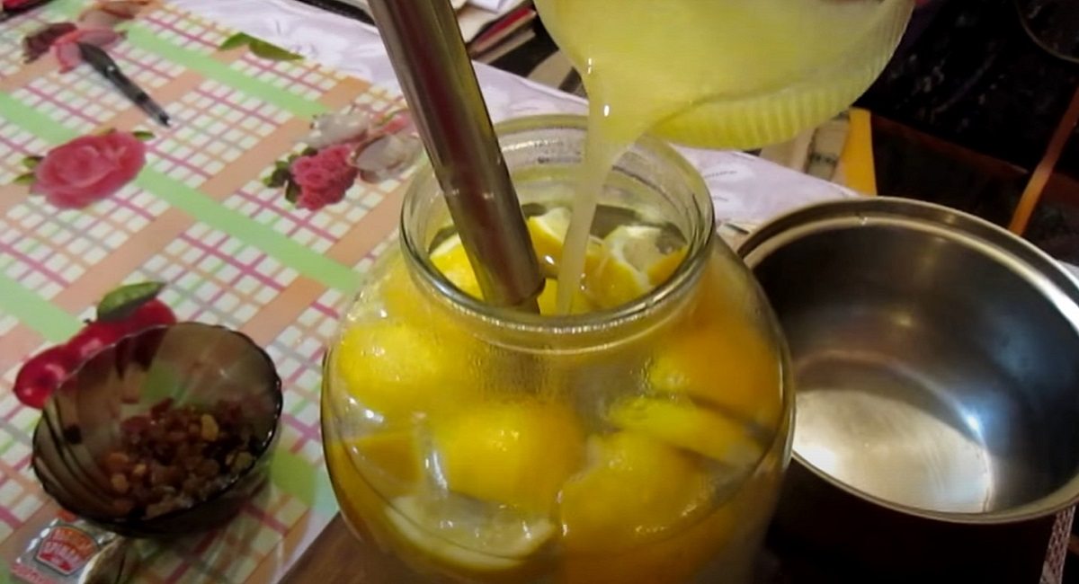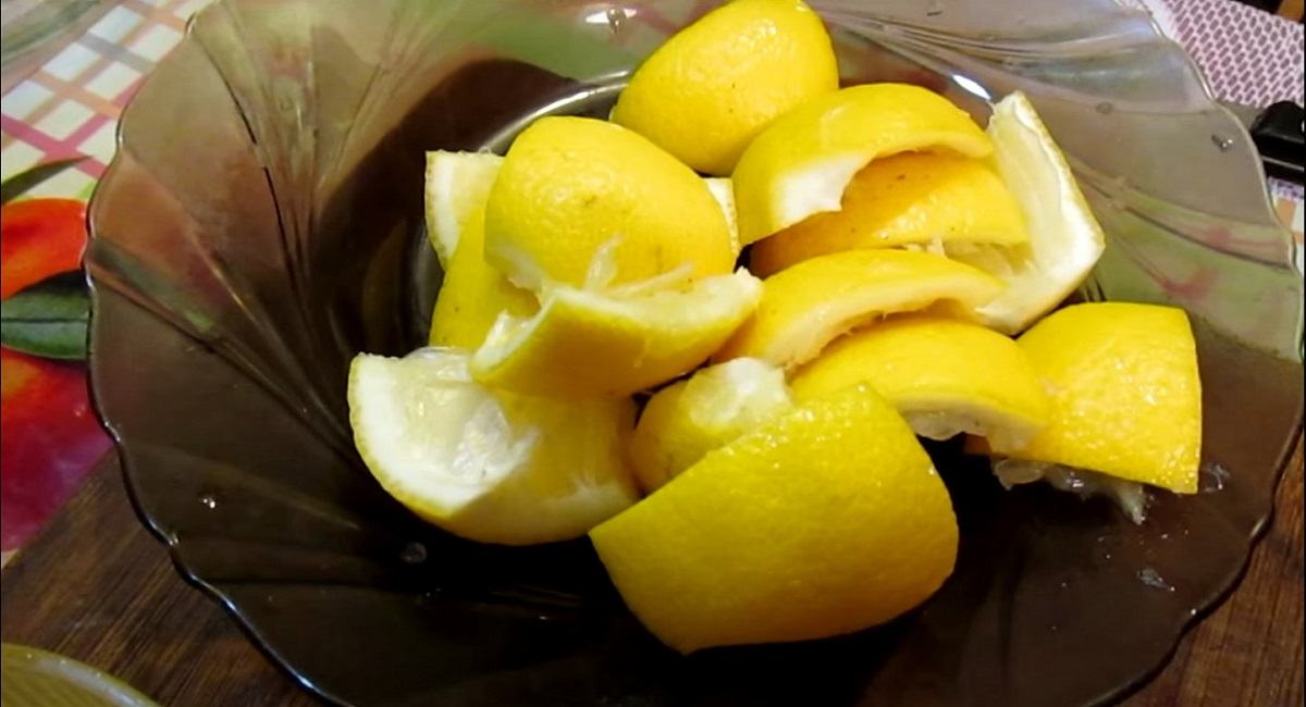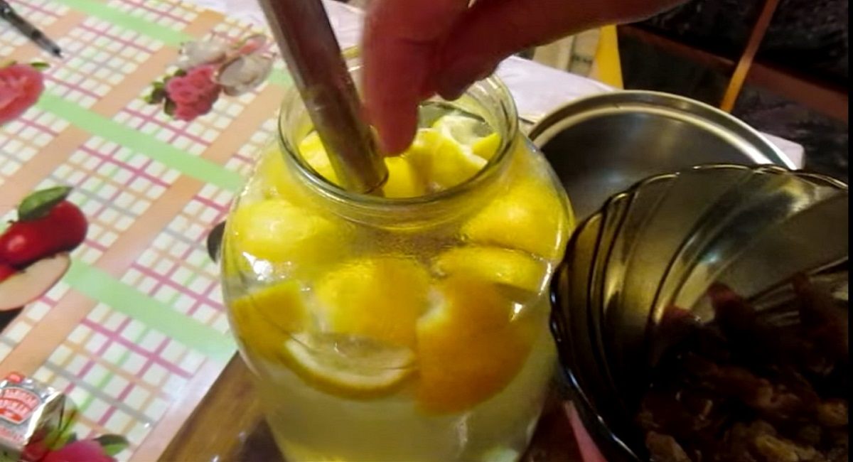 Cytryny należy przekroić na pół, wycisnąć z nich sok oraz usunąć miąższ. Skórkę pokrojoną na drobne kawałki umieścić w słoiku.