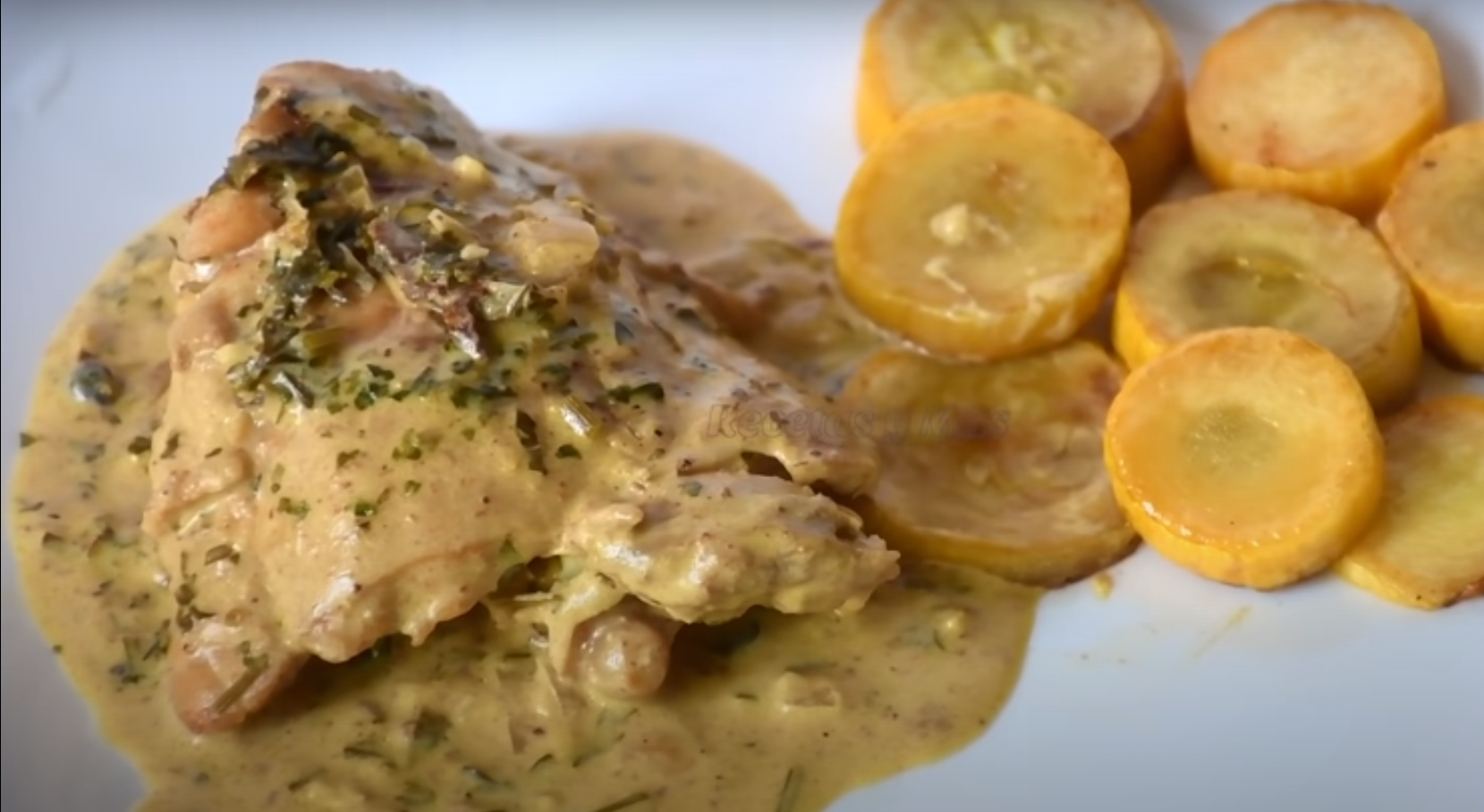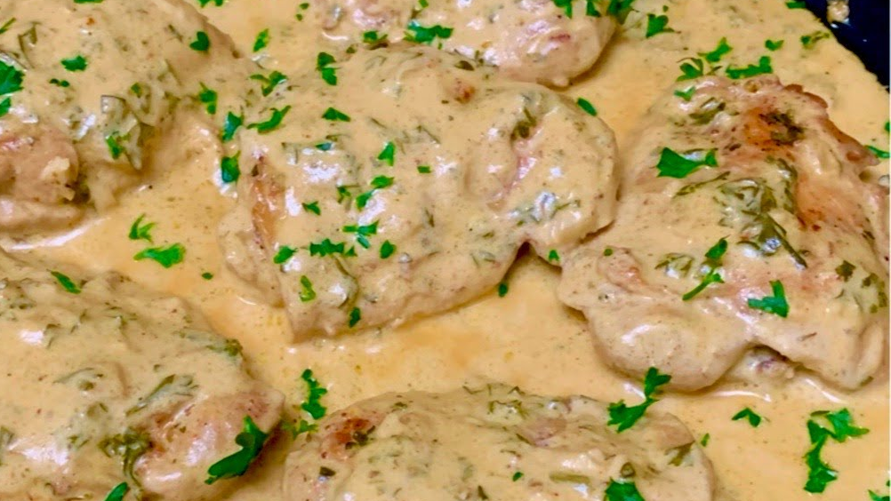 Pyszne kawałki kurczaka w sosie śmietanowym z czosnkiem. Dawno nie jadłaś lepszego mięsa.