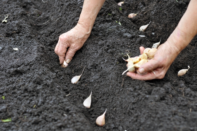 Czosnek sadzimy częścią korzeniową do dołu, zachowując odległość 7-8 cm między ząbkami oraz 20 cm między rzędami. Na zimę warto przykryć uprawę liśćmi, torfem lub humusem, co zabezpiecza przed mrozem.