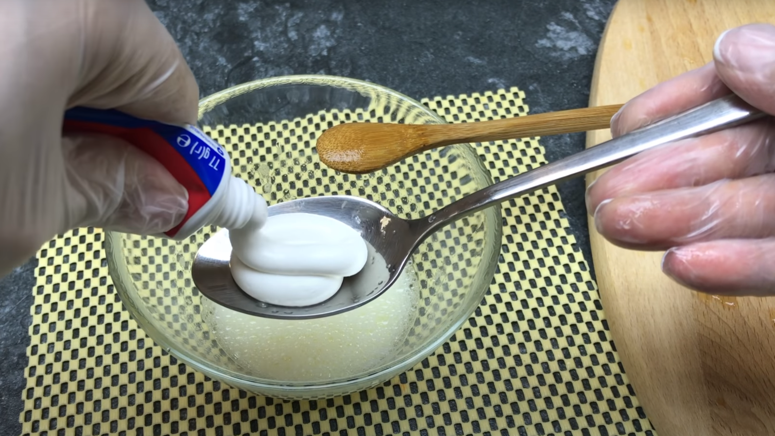 Następnie dodaj łyżeczkę pasty do zębów i dokładnie wymieszaj.