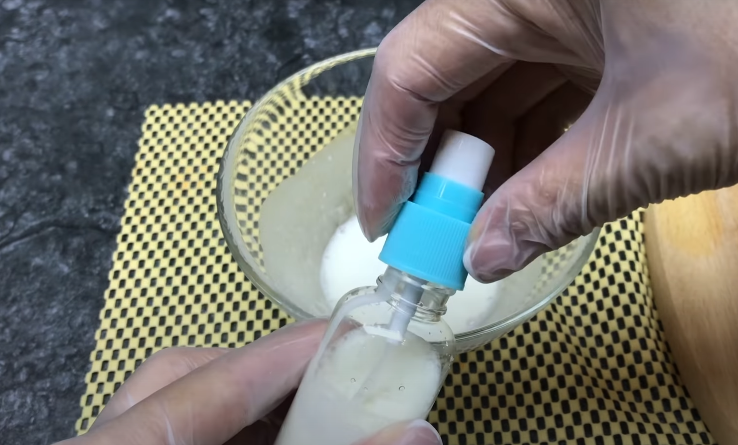 Dodaj wodę utlenioną (3%) i znowu wymieszaj. Teraz możesz przelać miksturę do buteleczki, najlepiej z rozpylaczem (możesz użyć pustego, umytego opakowania po zużytym kosmetyku)