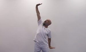 Ustaw się blisko ściany, upewniając się, że biodra, pięty, plecy i głowa dotykają jej powierzchni. Twoje ciało powinno tworzyć prostą linię. Ramiona unieś i przyciśnij do ściany, wznosząc je nad głową. Poczuj, jak podczas głębokiego wdechu, twoje dłonie, przedramiona, a potem palce wyciągają się ku górze. Z wydechem pozwól rękom opaść. Całość powtórz między 3 a 5 razy.