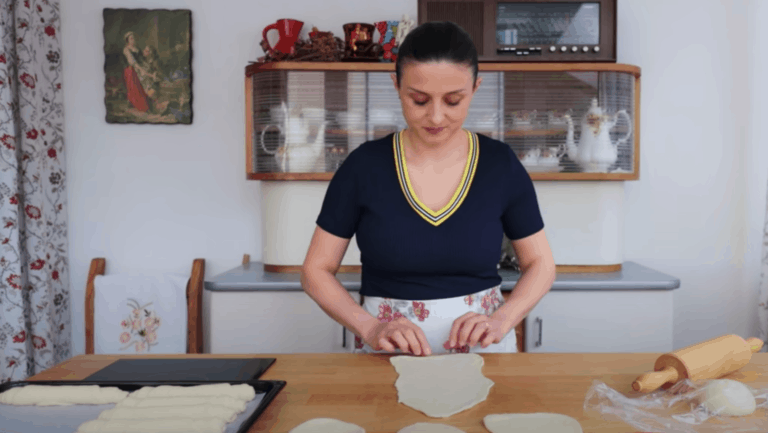 Gdy kulki wyrosną, rozwałkuj każdą na placek o długości około 20 cm.