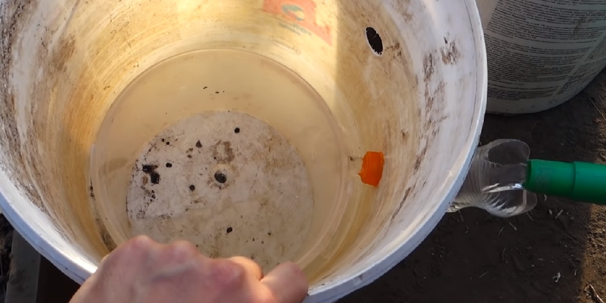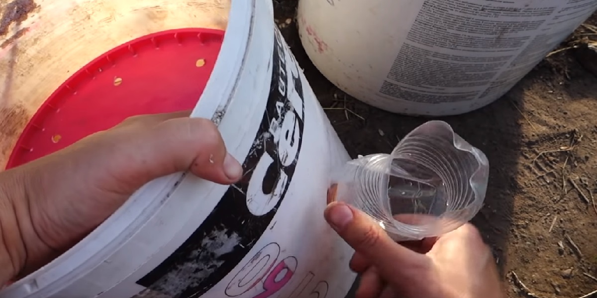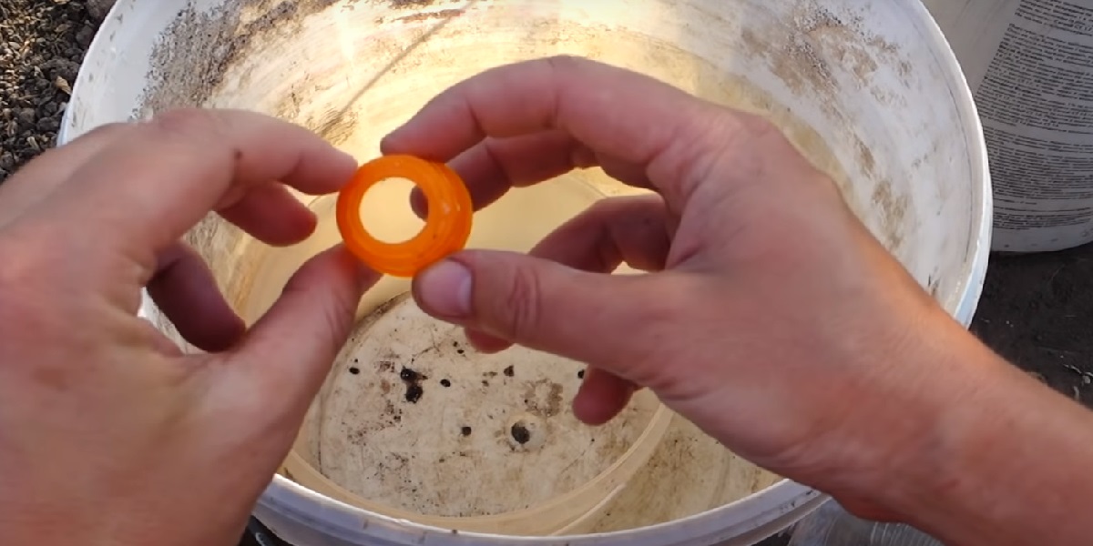 Potrzebujesz również szmatki lub np. starej koszulki, najlepiej syntetycznej i sznurka. T-shirt potnij na paski, sznur na kawałki. Długość szura powinna odpowiadać wysokości dużego wiadra plus 3 cm. Paski i sznurki zamontuj w dziurach wykonanych w przykrywie jak na zdjęci poniżej.