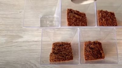 Spryskaj kremem prażone orzechy. Następnie posypujemy delikatnie pozostałymi ciasteczkami i na koniec dekorujemy filiżankę czekoladową praliną. Następnie możesz je natychmiast podać.