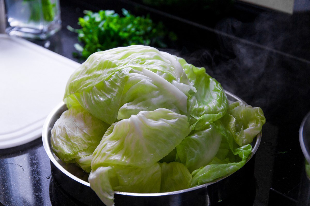 Kapustę należy umyć i usunąć górne liście oraz łodygę. Następnie włożyć do garnka i wrzącą wodą, aby liście zmiękły. Gdy ten czas nastąpi i liście będą już elastyczne należy je wyjąć i zostawić do ostygnięcia.