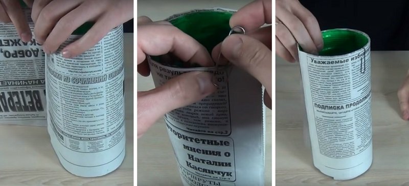 Następnie pułapkę owiń z zewnątrz przygotowanym ciemnym materiałem lub gazetą. Do zamocowania możesz użyć dwustronnej taśmy lub spinaczy.