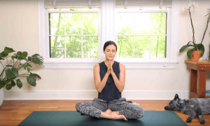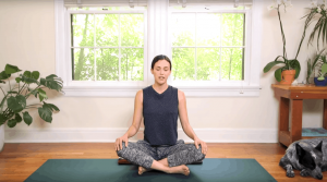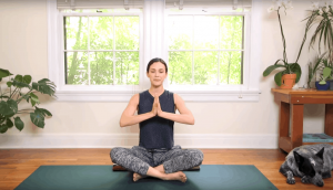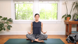Następnie złóż dokładnie ręcznik lub koc i usiądź na nim. Pozycja, w której siedzisz, musi być dla ciebie wygodna i powinna pozwalać na swobodne wyciągnięcie kręgosłupa. W takiej pozycji połóż ręce na kolanach i zamknij oczy. Teraz głęboko oddychaj tak, aby wczuć się w każdy wykonywany oddech.