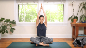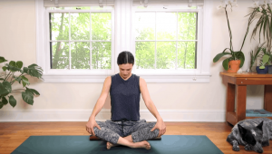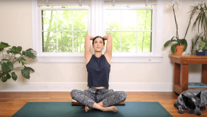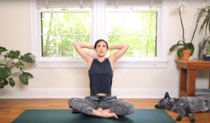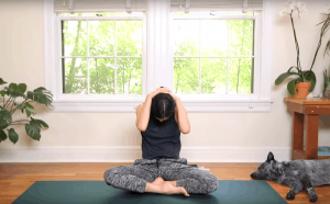 Teraz, aby się zrelaksować, przejdź do siedzącej pozycji tureckiej, pamiętając o tym, by nogi umieścić przed sobą. Dłonie złóż przy pomocy palców i połóż głowę, tak by kciuki skierować w kierunku szyi. W tym samym momencie postaraj się wyciągnąć plecy za pomocą rozsuwania łokci.
