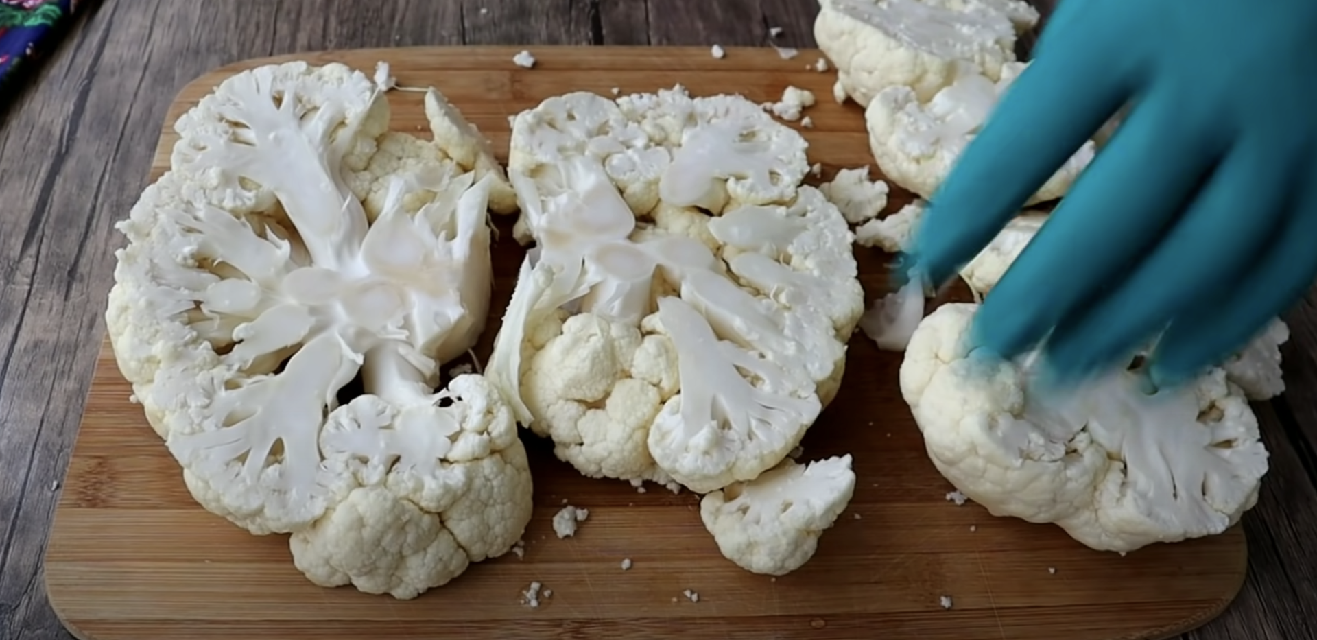 Po umyciu kalafiora pokrój go na cienkie plasterki.