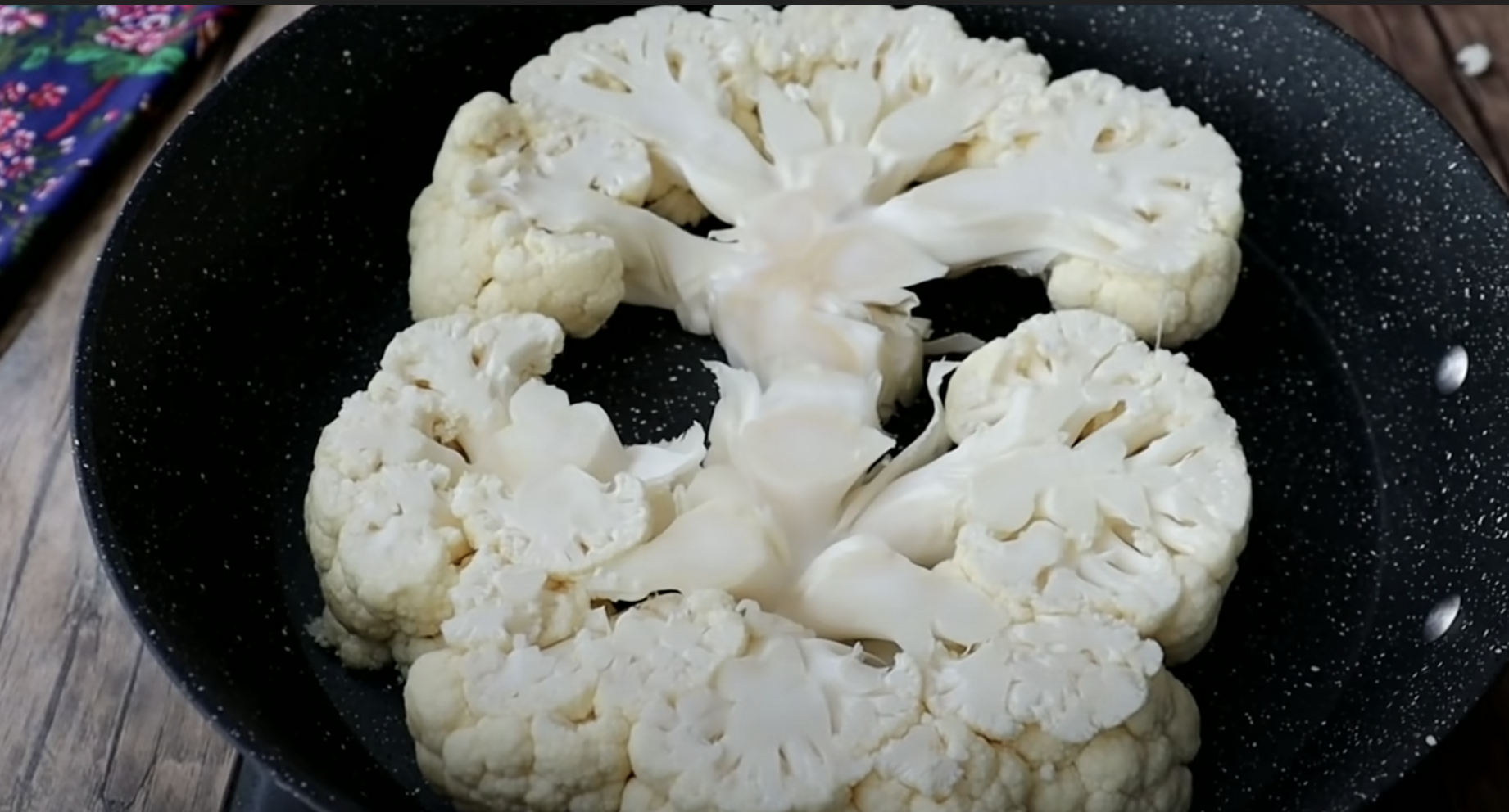 Gotuj kalafior przez kilka sekund na patelni, aż stanie się chrupiący. To wszystko, smacznego!