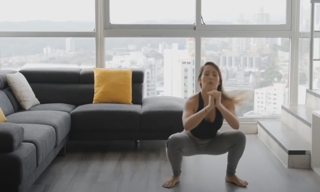 Zacznij od głębokiego przysiadu z nogami szeroko rozstawionymi.