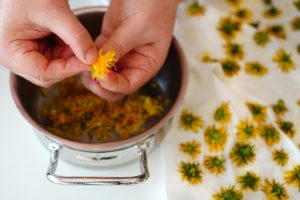 W pierwszej kolejności należy umyć i wyczyścić kwiaty mniszka. Należy to zrobić od razu po zerwaniu kwiatów. Nie można ich zwyczajnie umyć pod bieżącą wodą, gdyż w ten sposób utracilibyśmy pyłek, a kwiaty uległyby zmiażdżeniu. Trzeba do tego podejść w inny sposób.