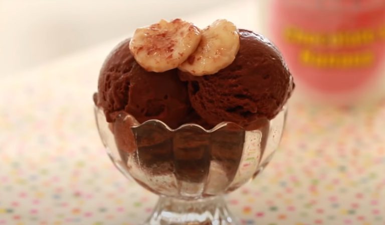 Weź 100 g mrożonych kawałków banana i dodaj 70 g jogurtu, 1 łyżkę kakao, 1 łyżkę miodu i mieszaj do uzyskania konsystencji musu czekoladowego. Dodaj kroplę ekstraktu waniliowego, aby Twoje lody były jeszcze bardziej miękkie i smaczniejsze. Włóż do zamrażalki na 6 h.