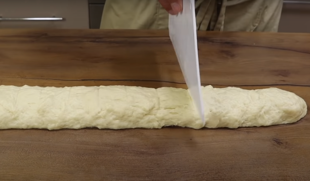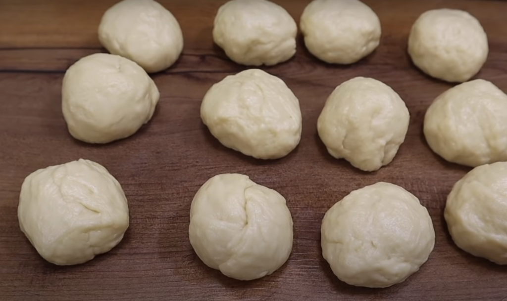 W międzyczasie posiekaj świeże zioła i wymieszaj je z serkiem do smaku. Uformuj ciasto w długi wałek i podziel go równomiernie na mniejsze kawałki. Z każdego uformuj kulkę.