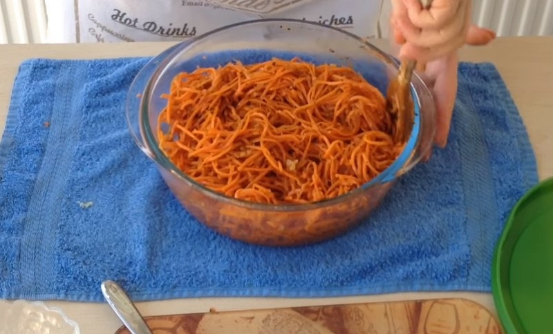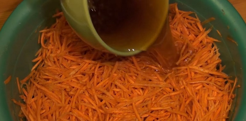 Dodaj szczyptę zmiażdżonych nasion kolendry. Jeśli nie możesz czekać, możesz jeść od razu, ale lepiej pozostawić marchewkę na kilka godzin w temperaturze pokojowej, a następnie wstawić do lodówki na kolejne 3-4 godziny.