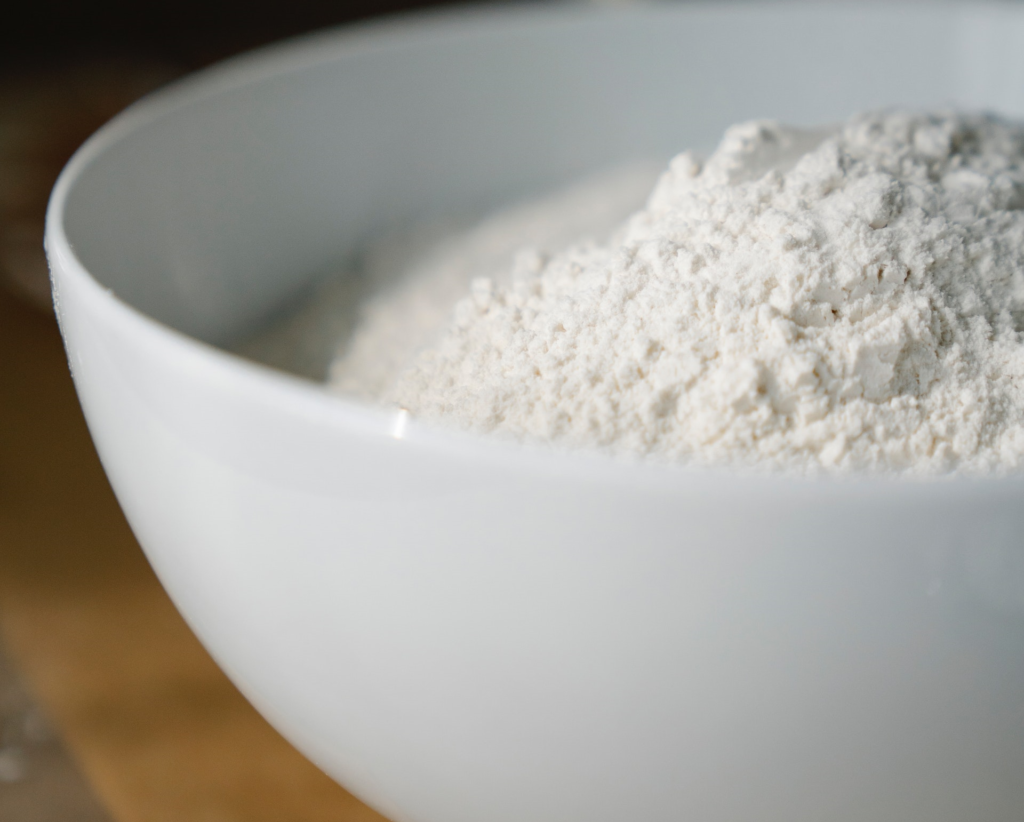 Wlej mąkę do głębokiej miski. Wlej ciepłe mleko do innej miski.