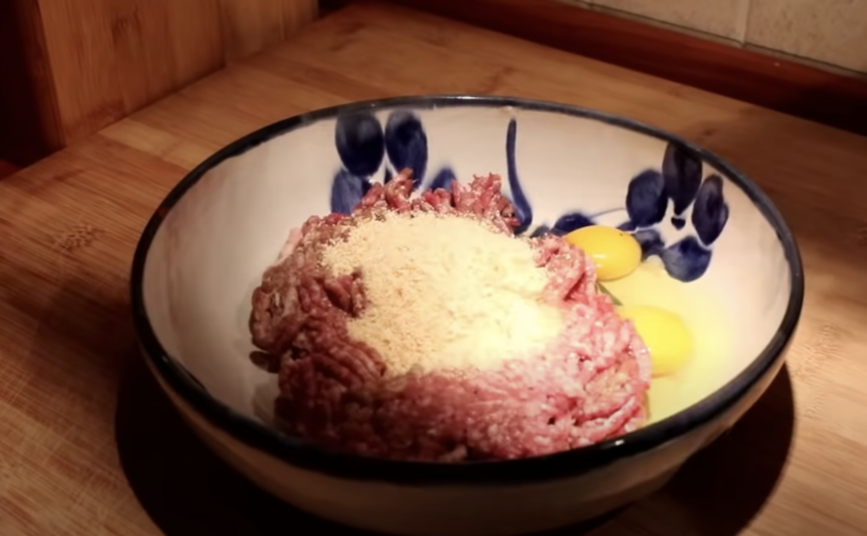 Mięso przyprawić i wymieszać z bułką tartą oraz z jajkami.