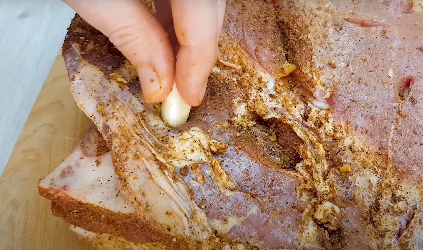 Następnie zrób  kilka nacięć i włóż w nie ząbki czosnku.