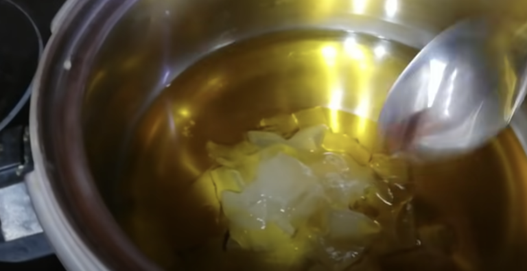 Po upłynięciu czasu wylewamy wodę i kroimy liść – wycinamy dolną część oraz usuwamy boki.