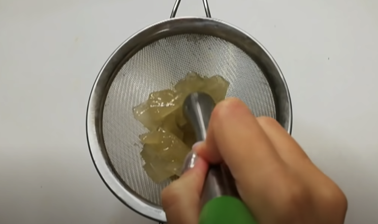 Teraz możemy odcedzić miksturę i wycisnąć miąższ.