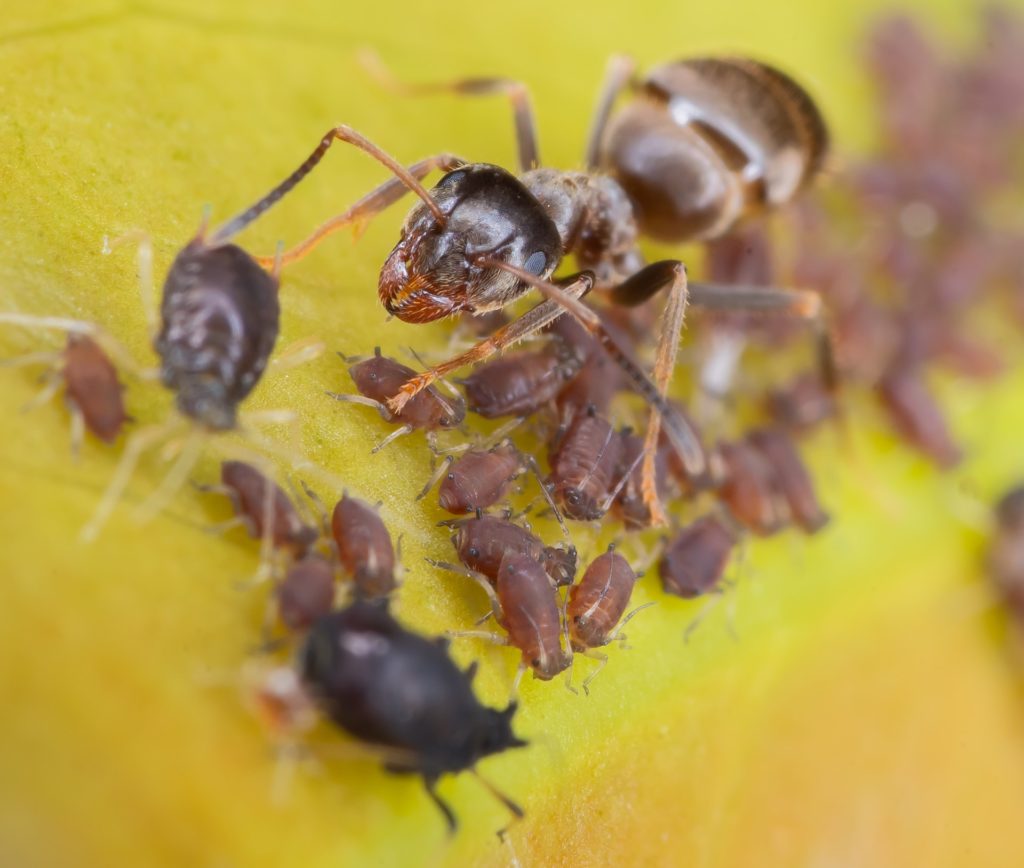 Mrówki i mszyce są blisko spokrewnione. Mszyce wytwarzają słodką wydzielinę, którą żywią się mrówki. Mrówki to rodzaj pojazdu, który przenosi mszyce i może zaatakować cały ogród.