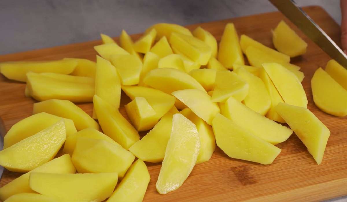 Ziemniaki obieramy i kroimy w dość dużą i równą kostkę. Następnie zalewamy wodą i gotujemy około 15 minut – aż do uzyskania miękkości.
