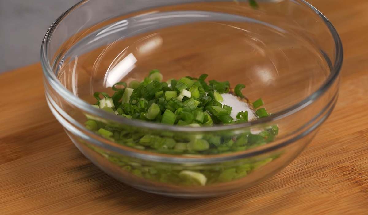 Musztardę, sól, ocet winny, posiekane zioła i oliwę z oliwek umieszczamy w miseczce i dokładnie mieszamy.